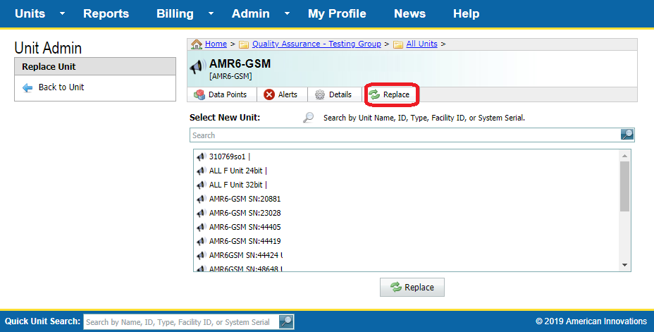From your landing page, such as All Units, navigate to the unit to be replaced.