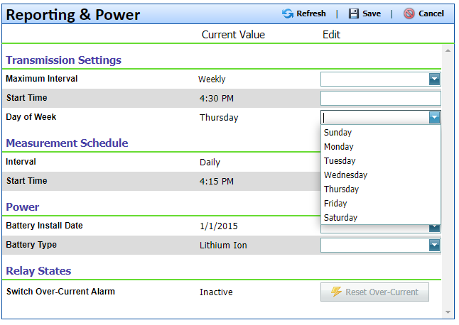 Maximum Interval — Sets how often transmissions will be sent. Options are First of the Month, Daily, or Weekly.