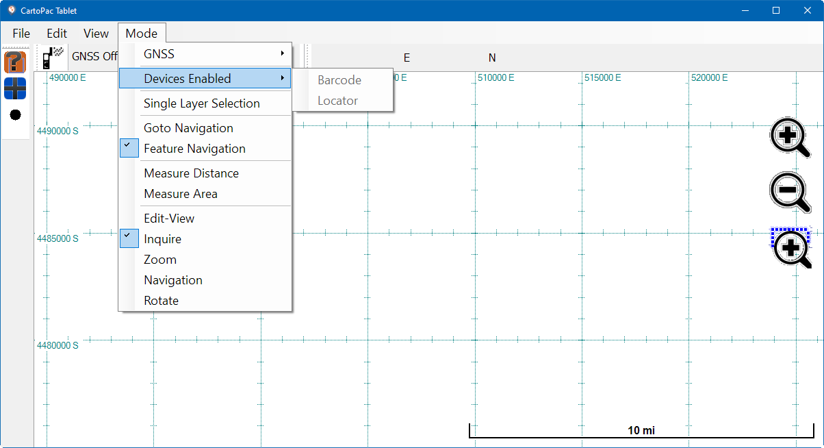 The Devices Enabled side menu includes a list of peripheral that have been enabled. To view the list, select Mode > Devices Enabled.