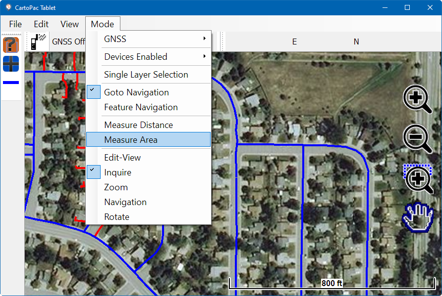 Select the starting point on the map and then at least two additional points to create a polygon. The points automatically connect to create an area. The Measure window updates to display the perimeter and area of the polygon drawn from the points (the points and lines are shown in red in the following example).