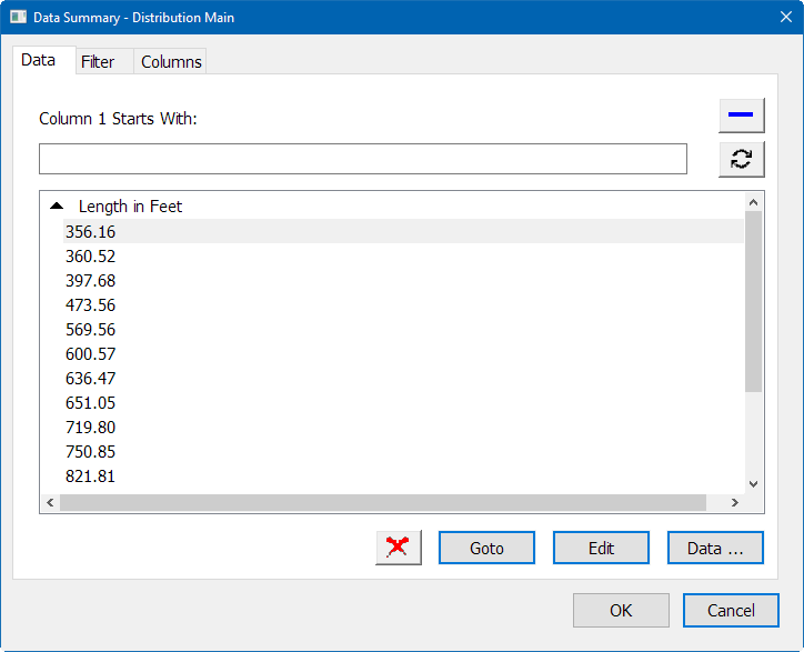 Data Summary Window - Filter Tab