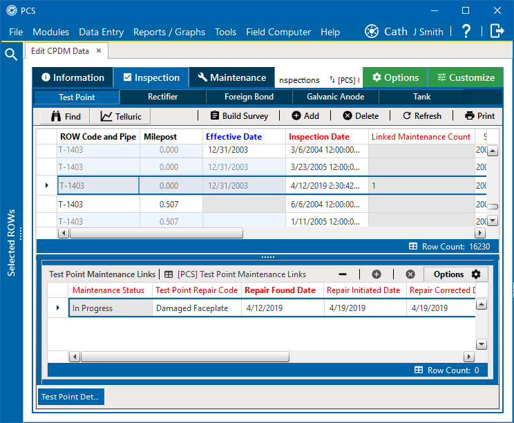 PCS 2.0 will now link inspection records with their related maintenance records when imported from a Field Computer, as well as linking maintenance records with their follow-up inspection records. This means you can find maintenance items related to a specific inspection record without manually matching Inspection dates with Repair Found dates. When a survey file contains both an inspection record and a maintenance record for the same site, those records are considered related and PCS will automatically link the inspection and maintenance records. If open maintenance records were sent to the field computer, the new inspection record created for the same site will be linked to the maintenance record.